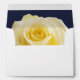Enveloppe d'adresse de retour pour épouser RSVP, avec un beaux rose jaune et adresse de la partie antérieure. L'enveloppe est assortie à d'autres articles dans la collection bleue de minuit de mariage de rose jaune.