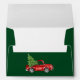 Script de calligraphie moderne Joyeux Camion rouge Vintage de Noël avec Enveloppe Arbre de Noël - Vert forêt