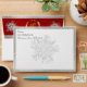 This holiday envelope features a snowflake with silver ribbon trim on a red background. The back flap has a placeholder for the last name initial bordered by leaf monogram frame in silver. This envelope is designed to coordinate with the "Silver Framed Photo & Crystal Snowflake Holiday Card" To change details, click «Personalize». To move the text or change the text size, font, or color click «Click to customize further».