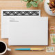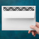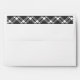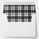 Enveloppes élégantes avec texte de bloc modifiable pour votre adresse de retour à l'avant, et bordées d'un motif plaid noir et blanc à l'intérieur, et d'un ruban plaid à l'arrière.