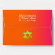 Cette enveloppe de néon orange, rose chaud et noir A7 avec des fleurs et des papillons vert néon, violet et bleu a une étoile de David sur le dos qui correspond à l'invitation Bat mitzvah présentée ci-dessous. Si vous avez besoin d'autres articles correspondants dans cette conception, veuillez envoyer votre demande par courriel à niteowlstudio@gmail.com.