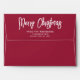 Ajoutez une touche moderne chic aux cartes de fin de année avec des enveloppes d'adresse de retour élégantes, rouges et blanches. L'accueil sur ce modèle est simple à personnaliser à n'importe quel libellé, comme Joyeux Noël, Joyeux Fêtes, Joyeuses Fêtes ou Bonne Année. En option, modifiez le message d'accueil de typographie de script en nom, et utilisez le reste pour l'adresse uniquement. Le design comprend une calligraphie brossée à la mode et un nom et une adresse minimalistes modernes. Des enveloppes élégantes customisées ajoutent un joli détail aux cartes de Noël et aux invitations de fêtes de fin d'année.