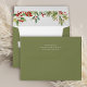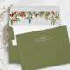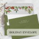 Ce design comprend une enveloppe de Noël, avec un modèle d'adresse de retour, avec rouge et vert, élégant, verdure et feuillage, une aquarelle, vacances, baies sèches, un design classique de Noël classe.