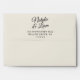 Une enveloppe mariage rétro moderne écrite à la main et colorée. Ce qui présente les noms de mariée et de marié en gras en noir. Et adresse de retour personnalisée. Sur simple arrière - plan crémeux vintage couleur. Ce qui convient à toute la suite mariage.