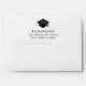 Simple et élégante les enveloppes pré-imprimées cette par obtention du diplôme d'adresse de retour sont la manière parfaite d'écarter le mot au sujet de votre diplômé. Une silhouette noire d'un casquette et d'un gland d'obtention du diplôme, contenant leur année de classe, apparaît sur un arrière - plan blanc propre. À l'intérieur de l'enveloppe énonce également votre année de classe d'obtention du diplôme.