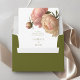 These lovely wedding invitation envelopes feature a chic and trendy olive green jacket, while the inside sports a lovely floral rose bouquet. Included are a contemporary set of fonts for return address.