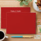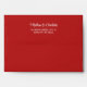 Enveloppe de Noël personnalisée avec une adresse de retour sur le dos et un ton rouge foncé à l'intérieur. Papier à lettres personnalisé avec script et polices serif élégantes.