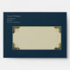 Cette enveloppe élégante crée une présentation élégante pour vos invités lorsqu'ils reçoivent votre faire-part de mariage. Cette suite d'essentiels mariages a une esthétique minimale avec un style Art Déco. Ce magnifique design papillon a un aspect éthérée de bijou avec des détails d'or antique et de marbre bleu. Créez une atmosphère de sophistication intemporelle avec les designs de cette collection. Tous les objets de cette collection sont assortis aux mêmes détails élégants en faux or et en marbre. —> NOTES : 1. La zone d'adresse située à l'avant de l'enveloppe est destinée à être légèrement en retrait. Il est conçu pour répondre aux normes de la poste américaine. 2. Customisez l'adresse de retour et le monogramme sur le rabat arrière avec vos détails. 3. Il ne s'agit pas d'un élément de papier journal.