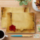 Design élégant avec sceau de cire sur une enveloppe de parchemin. .