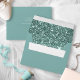 Une peinture à l'aquarelle, dans des tons étincelants de vert de verre marin avec des éclaboussures de rose vif doux, accentue la plupart des pièces de cette belle suite mariage. L'enveloppe de coordination montrée ici comprend un intérieur de parties scintillant et un extérieur vert sauge solide avec un modèle pour ajouter facilement vos propres noms et adresse sur le rabat arrière. Recherchez ID886 pour voir d'autres pièces et choix de couleurs pour cet ensemble.
