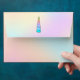 Une jolie enveloppe de licorne avec une adorable petite licorne de bébé dans le coin inférieur gauche, avec des ailes et une corne de couleur arc-en-ciel. Il y a une autre corne colorée sur le rabat arrière de l'enveloppe, et un motif de parties scintillant doré brillant à l'intérieur. Cette enveloppe a été faite spécialement pour correspondre à une invitation d'anniversaire existante qui fait partie de l'ensemble, et vous pouvez la consulter ici : https://www.zazzle.com/pastel_and_gold_glitter_unicorn_birthday_invitation-256822904581523067