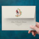 Enveloppe de Noël vintage, élégante, aux branches saintes, petit oiseau rouge et adresse de retour.