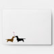 Mignonne enveloppe de faire-part de mariage à thème pour chien, faite en blanc, avec un arrière - plan en détresse rose à l'intérieur. Des graphismes doux d'un baiser noir et marron décorent l'avant de l'enveloppe, avec une bande rayée brune, rose et noire, sur le rabat inférieur du dos. L'adresse de retour de texte noir, sur le rabat arrière, est entièrement personnalisable et prête à être personnalisée avec vos informations. Produits mariages correspondants disponibles.