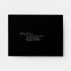 Il s'agit d'une enveloppe RSVP noire classique avec une calligraphie romantique. La typographie blanche sur arrière - plan noir est parfaite pour un mariage élégant et romantique.