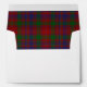 Belle enveloppe faite sur commande faite dans le blanc, avec le motif rouge, bleu, et vert traditionnel coloré de tartan de MacIntyre de clan, sur l'intérieur de l'enveloppe. Un bord bleu sur l'adresse de retour d'aileron arrière et de textes faits sur commande noirs de manuscrit est prêt à personnaliser. Addition parfaite à notre faire-part de mariage de plaid de MacIntyre réglé et à carte de remerciements.