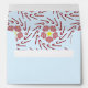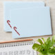 Light blue Christmas envelope with candy cane accents and a preppy pinwheel print.