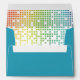 Arc-en-ciel et turquoise coloré joueur de pixel ou jeu vidéo Bar Mitzvah enveloppe d'adresse de retour personnalisée. Cette conception de jeux vidéo inspirée des joueurs non traditionnels comporte une pluie de couleurs vives ou des pixels numériques en cascade à l'intérieur de l'enveloppe. L'extérieur de l'enveloppe est turquoise. Les polices sont de style informatique techno. Si vous envisagez d'héberger un jeu vidéo sur le thème Bar Mitzvah, alors cette enveloppe de pixels plume du joueur Bar Mitzvah peut être juste le choix parfait.