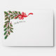 Festive et charmant, cette enveloppe thématique de vacances est composée d'une guirlande de branches vertes saintes avec des baies rouges attachées avec un arc en ruban rouge bouché avec une police de script "gentiment livrer" texte sur le devant. Une adresse de retour pré-imprimée classique sur le rabat arrière a également un autre accent arc rouge tandis que l'intérieur de l'enveloppe est imprimé dans un motif à rayures rouge et blanc coordonné et joyeux pour apporter la nostalgie du classique cadeau de Noël, le sucre de canne.