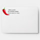 Une enveloppe rouge festive avec un poivre rouge pour célébrer un quarantième anniversaire. Enveloppe d'anniversaire amusante pour célébrer un 40e anniversaire. L'âge de 40 ans peut être changé à n'importe quel âge.