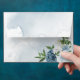 Superbe enveloppe de mariage botanique bleu aquarelle avec de belles nuances bleues et des fleurs blanches avec feuilles verts