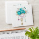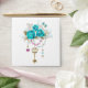 Clé d'or antique aux roses turquoise tendance décorée de feuilles d'or blanc et de perles rose et bleu. Couleur tendance. Rose turquoise. Blanc doré. Tiffany bleu.