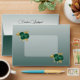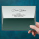 Une enveloppe élégante avec parties scintillant verte, feuilles or et roses verts.