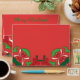 Design personnalisé d'enveloppe de Noël avec une élégante bordure d'art populaire en rouge, blanc et vert. Le texte est entièrement personnalisable.
