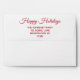 Associez cette enveloppe à vos cartes de Noël. L'intérieur est décoré d'une simple bande rouge et blanche avec le rabat arrière a Happy Holidays et votre nom et adresse de retour.
