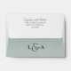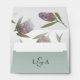 Enveloppe rustique et joli mariage. Doté d'une belle floraison protéique dans le pourpre poussiéreux. Sage dégradé vert sur l'extérieur de l'enveloppe avec votre adresse de retour et monogramme. Changez pour refléter vos données personnelles.