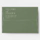 Une calligraphie boho minimaliste sauge enveloppe de mariage verte. Comme vous le voyez, il comporte un script de couleur blanche. Avec fond vert sauge clair. Et des informations personnalisables sur l'adresse de retour.