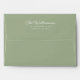 Enveloppes formelles préimprimées avec adresse de retour, personnalisables en couleur, taille et type de papier dans une police de caractères moderne. C'est la version verte sage.