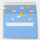 Envoyez vos invitations et vos cartes dans le style avec cette enveloppe personnalisée mignonne qui comprend un motif répétitif dessiné à la main avec des soleils souriants et un ciel bleu nuageux à l'intérieur ainsi qu'une adresse de retour imprimée personnalisée sur le rabat supérieur. L'adresse de retour est personnalisable. Pour modifier le texte, cliquez sur "personnaliser ce modèle". Il y a un nuage et le soleil qui ornent le dos au-dessus de l'adresse de retour imprimée dans une police jaune.