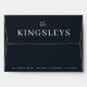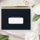Une enveloppe de vacances moderne et design avec votre nom de famille présenté dans la typographie classique associée avec écriture manuscrite en blanc un bleu foncé magnifique de noir caractéristique couleur. Un design minimaliste saisissant pour se démarquer de la foule cette saison de noël!