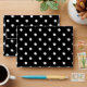 Cet motif affiche des pois blancs moyens sur un arrière - plan noir. Cuisine et vivante pour tous les jours ou toutes les occasions qui vous plaisent. De plus, vous pouvez personnaliser ou customiser ce design en ajustant la taille de l'image ou en ajoutant votre propre texte, en cliquant sur le bouton "Personnaliser" ou "Customiser" à droite.