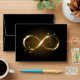 Or, bijoux symbole infini avec étoiles or sur un arrière - plan noir. Design avec étoile d'or.