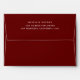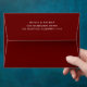 Ces enveloppes de mariage minimalistes et élégantes présentent du texte blanc moderne sur un arrière - plan marron rouge foncé. Un look simple et élégant qui est pré-imprimé avec votre adresse de retour.