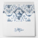 Elégant classique gravé bleu et blanc motif de toile florale avec vignettes moulin et voilier dans des médaillons Rococo ornés avec des guirlandes de roses et de vignes tourbillonnantes. Le motif est transparent et peut être mis à niveau vers le haut ou vers le bas. Champs de texte modifiables et ornements floraux complémentaires.