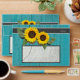 Mariage rustique Tournesol Turquoise en bois Gris Enveloppe