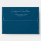 Enveloppe turquoise couleur bleue pour vos invitations de mariage et affiche votre nom et adresse imprimés sur le rabat arrière dans un style de script moderne. Personnalisez votre enveloppe en modifiant et en remplaçant le nom et l'adresse par le vôtre. Modifier pour modifier le style ou la couleur de police. Sélectionnez la taille de votre enveloppe qui correspond à votre invitation.