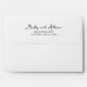 Simple enveloppe blanche avec un joli script et des polices sans empattement modernes pour l'adresse de retour.