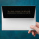 Élevez votre correspondance d'affaires avec notre simple enveloppe de typographie noir et or blanc. Cette enveloppe A7 présente un design épuré et sophistiqué en blanc propre avec un rabat solide sur le dos avec typographie classique en or. Customisez-le avec le nom, l'adresse et les coordonnées de votre entreprise dans la typographie dorée classique pour une touche professionnelle. Parfait pour envoyer des documents importants, des invitations et plus encore.