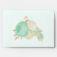 fleurs vert menthe & blanc avec enveloppe mariage feuille or. Les détails de la parties scintillant sont simulés.