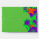 Enveloppe verte avec un motif tourbillonnant violet et vert parsemé d'étoiles magiques, orange et vertes. Un design personnalisable violet, vert et orange pour vous permettre d'ajouter vos propres textes, images et idées. Correspond aux invitations et cartes de la gamme "Spellbound". Créé à l'aide de techniques numériques par Jess Perry.