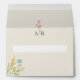 Bring fresh spring charm to your wedding stationery with this ivory wildflower envelope, designed with soft watercolor florals in yellow, blue, and pink tones. The outside features delicate corner florals and a customizable return address, while the inside flap includes a refined monogram accented with a tiny spring blossom.