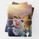 Un design vraiment charmant pour envelopper les cadeaux les plus spéciaux ! Une représentation artistique d'une créature mythique regardant le lever du soleil. De belles nuances de bleu doux, de violet et de lavande avec des touches de rose et d'orange se marient harmonieusement. L'ensemble crée des sentiments d'espoir et que tout est possible.