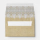 Enveloppe de la taille A6. NOTE : c'est une conception imprimée par appartement, il n'y a aucune dentelle augmentée, tissu ou a posé des éléments sur ce produit. PALETTE DE COULEURS : blanc, bronzage, COLLECTION de CONCEPTION de toile de jute : Assortiment bilatéral, enveloppe de faire-part de mariage de carré d'adresse imprimée et de retour. C'est un BOHO moderne ou un style de Bohème, gitan inspiré, regard élégant chic à la mode. Il a un simple, nettoient pourtant belle beauté. Créé du motif vintage victorien ou d'Edwardian d'ère de remous de baisse de feuille de dentelle et de la baisse profonds baroques de larme concevez les ornements qui ont été graphiquement main transformée en belle, sophistiquée frontière élégante d'équilibre de dentelle. Les dentelles sont étendues sur un motif d'arrière - plan texturisé par toile de jute souillé par thé. Un faire-part de mariage complet réglé est disponible pour assortir. Le verso a la baisse de larme, motif de dentelle de point de remous de diamant dans un plein motif de répétition.