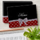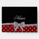 Arrière - plan rouge de motif de pois de diamants (diamants non vrais) avec un ruban argenté d'arc de parties scintillantes (parties scintillantes de faux, non vraies) personnalisé avec vos cadeaux nommés faits sur commande ou cadeaux de monogramme ou vos initiales vous pouvez écrire tous les mots que vous aimez comporter un lettrage de fantaisie élégant et traditionnel les cadeaux élégants pour des femmes, idéaux pour des mariages.