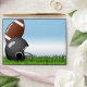 Célébrez une victoire au football, une fête d'anniversaire ou regardez le grand match avec cette marchandise cool de football. Une herbe verte le long du fond, avec un casque de football noir et gris, et un ballon de football en peau de porc, qui s'envole dans le ciel bleu. Regardez le match de championnat ou profitez de votre propre équipe et du succès sportif de l'entraîneur. Tous les dessins et modèles Copyright © 2012 www.Custominvitesonline.com