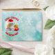 Christmas Funny Cute Kitty Cat Avec le Père Noël Cool et cadeaux de Noël sur un arrière - plan bleu turquoise avec des flocons de neige blancs. Vous pouvez la personnaliser avec votre texte personnalisé