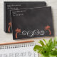 Pêche de corail frais et texte de tableau noir blanc avec un arrière - plan gris ardoise. Célébrez une cérémonie au bord de la mer avec ce palmier cool et un look craie blanc dessiné. Jolie atmosphère rustique vintage lors d'un mariage sur la plage. Copyright de conception © CustomInvitesOnline.com